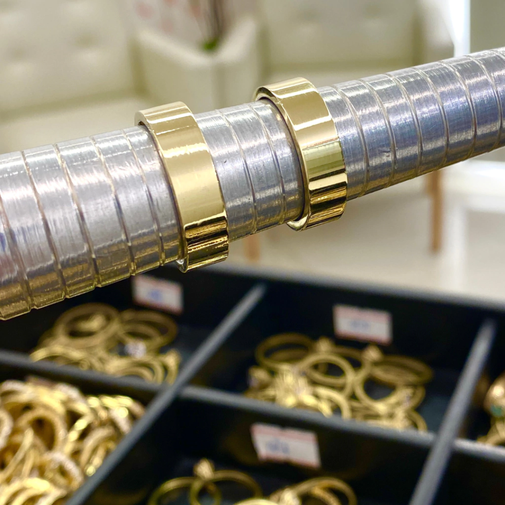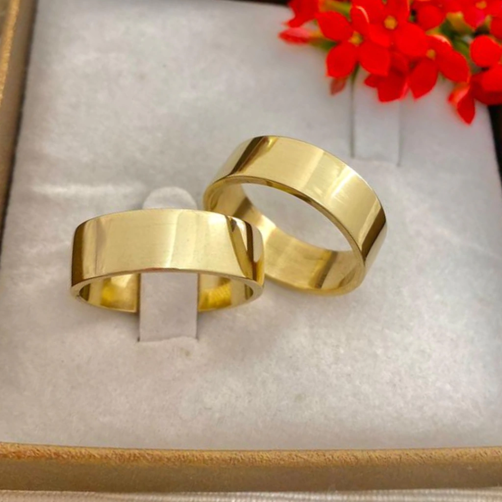 - são feitas a partir da liga de bronze e alumínio e por isso tem a cor idêntica ao No uso diário elas podem sujar muito ou pouco e em alguns casos quase não suja; isso depende do iodo de cada pessoa ou dos níveis de transpiração. A limpeza da peça é fácil; Basta usar uma flanela com a pasta de polir que vendemos ( digite PASTA POLIDORA no site). Em mercados também vende outros tipos de produtos para polir. É normal também o metal deixar uma marquinha verde do dedo em reação ao iodo da pessoa. ( temos alianças forradas na parte interna no site. As forradas não deixa o dedo verde.)